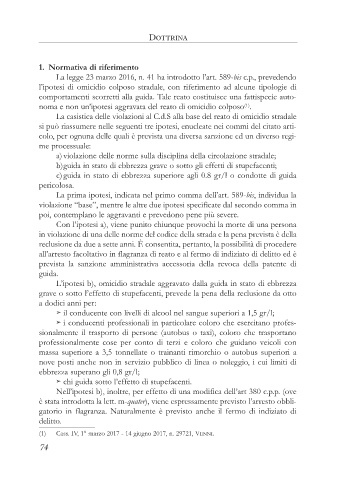 l’ipotesi di omicidio colposo stradale, con riferimento ad alcune tipologie di