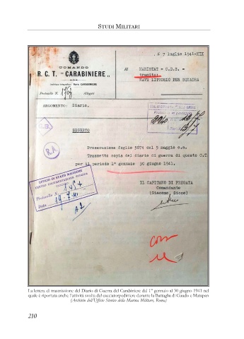 La lettera di trasmissione del Diario di Guerra del Carabiniere dal 1° gennaio al 30 giugno 1941 nel