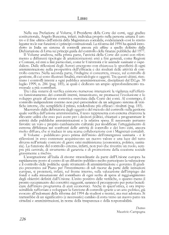Il Volume analizza, nella prima parte, l’attività della Corte dei conti con riferi-