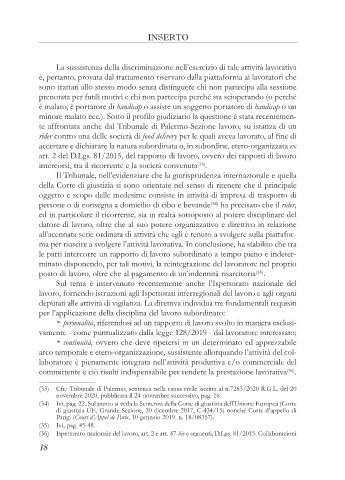è, pertanto, provata dal trattamento riservato dalla piattaforma ai lavoratori che