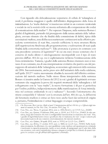 (13) Cfr. BALSAMO, RECCHIONE, Mafie al nord. L’interpretazione dell’art. 416-bis c.p. e l’efficacia degli stru-