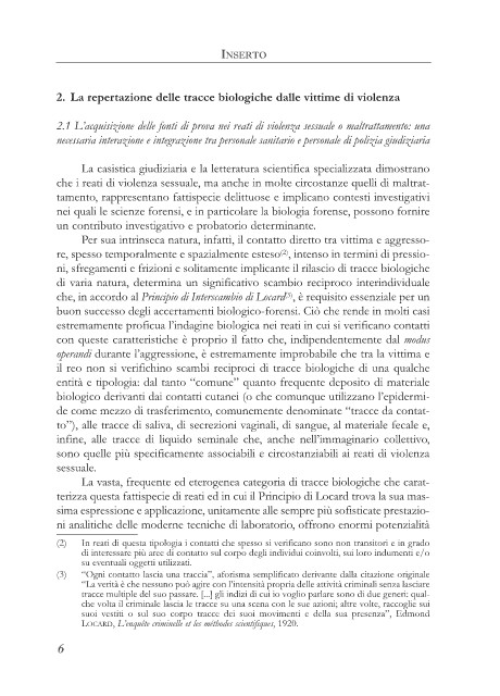 2. La repertazione delle tracce biologiche dalle vittime di violenza