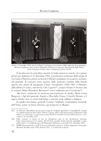 Roma, 15 dicembre 1982. Scuola Ufficiali Carabinieri, un momento della cerimonia di scoprimento