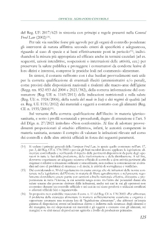 (14) Si vedano i principi generali della European Food Law, in specie quello contenuto nell’art. 17,