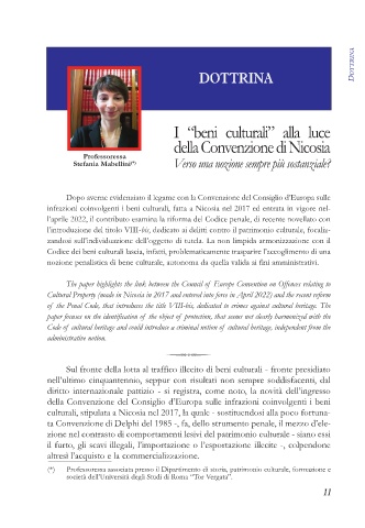 Code of cultural heritage and could introduce a criminal notion of cultural heritage, independent from the