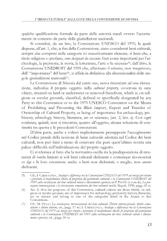 (5) Cfr., I. CARACCIOLO, Analogie e differenze tra la Convenzione UNESCO del 1979 sui mezzi per vietare