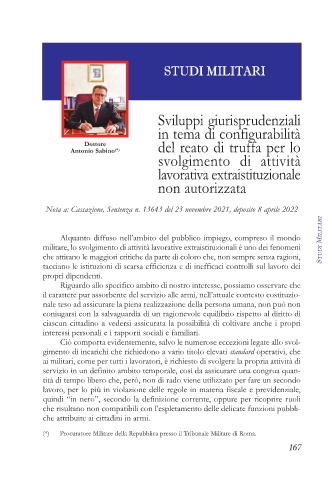 militare, lo svolgimento di attività lavorative extraistituzionali è uno dei fenomeni