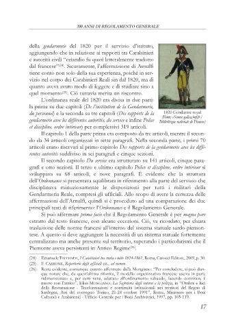 (24) Emanuele FACCENDA, I Carabinieri tra storia e mito 1814-1861, Roma, Carocci Editore, 2009, p. 30.