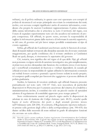 (30) Secondo quanto potuto verificare, il primo regolamento d’amministrazione dei Carabinieri