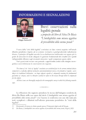 (1) De Blasis, L’intellegibilità come misura oggettiva di prevedibilità della norma penale, Napoli, 2023.