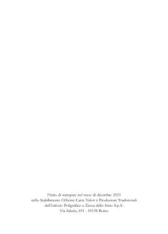 Finito di stampare nel mese di dicembre 2023 nello Stabilimento Officine Carte Valori e Produzioni Tradizionali dell’Istituto Poligrafico e Zecca dello Stato S.p.A. Via Salaria, 691 - 00138 Roma