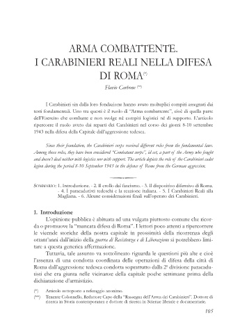 - 4. I paracadutisti tedeschi e la reazione italiana. - 5. I Carabinieri Reali alla