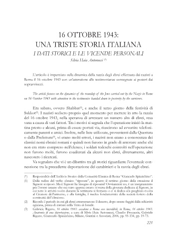 The article focuses on the dynamics of the roundup of the Jews carried out by the Nazis in Rome