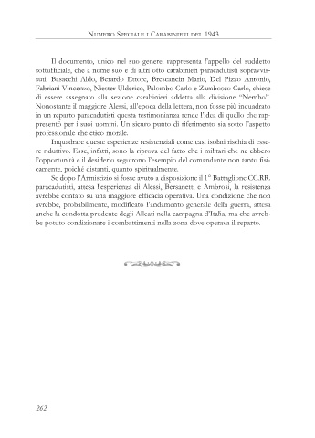 sottufficiale, che a nome suo e di altri otto carabinieri paracadutisti sopravvis-
