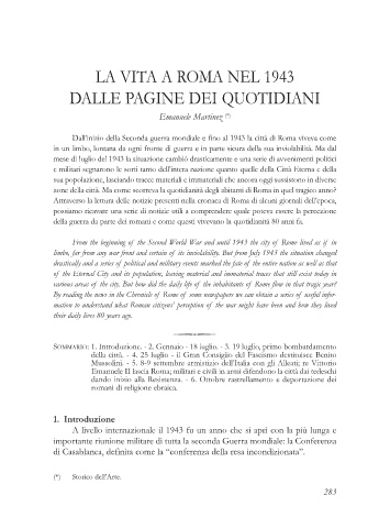 From the beginning of the Second World War and until 1943 the city of Rome lived as if in