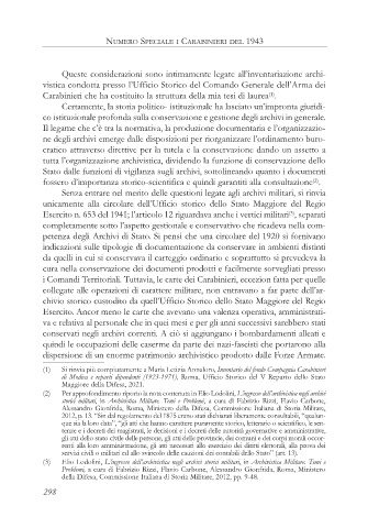 (1) Si rinvia più compiutamente a Maria Letizia Annaloro, Inventario del fondo Compagnia Carabinieri