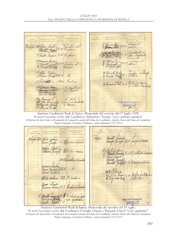 Stazione Carabinieri Reali di Ispica. Memoriale del servizio del 18 luglio.