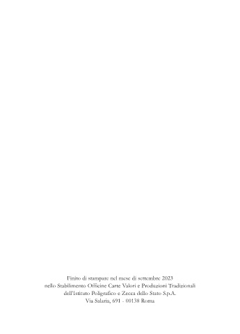 Finito di stampare nel mese di settembre 2023 nello Stabilimento Officine Carte Valori e Produzioni Tradizionali dell’Istituto Poligrafico e Zecca dello Stato S.p.A. Via Salaria, 691 - 00138 Roma 348