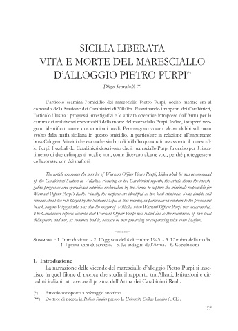 The article examines the murder of Warrant Officer Pietro Purpi, killed while he was in command
