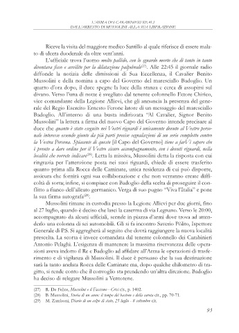 Mussolini e della nomina a capo del Governo del maresciallo Badoglio. Un