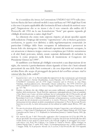 12 Cfr. sezione II, par. 5 del I Protocollo aggiuntivo alla Convenzione de L’Aja del 1954. In