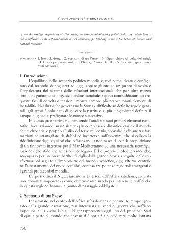 SOMMARIO: 1. Introduzione. - 2. Scenario di un Paese. - 3. Niger: chiave di volta del Sahel.