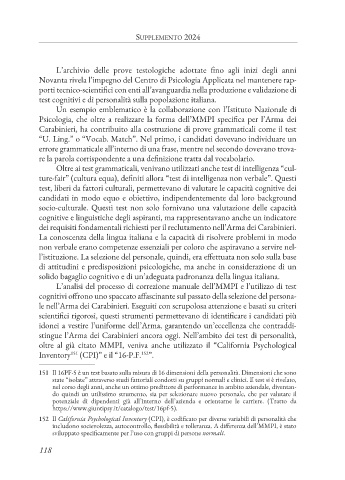 Psicologia, che oltre a realizzare la forma dell’MMPI specif ca per l’Arma dei