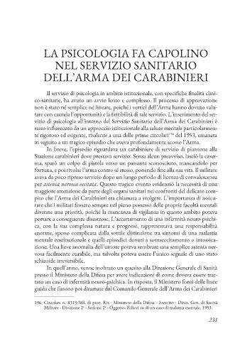 vizio di psicologia all’interno del Servizio Sanitario dell’Arma dei Carabinieri è