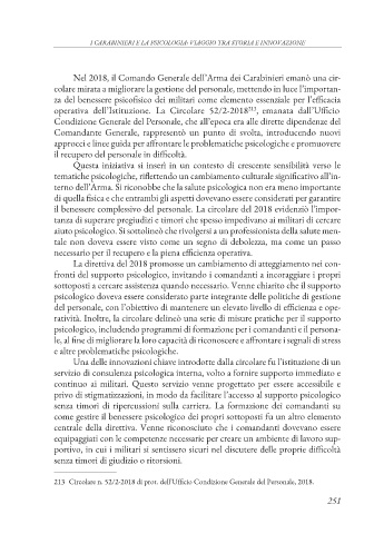 terno dell’Arma. Si riconobbe che la salute psicologica non era meno importante