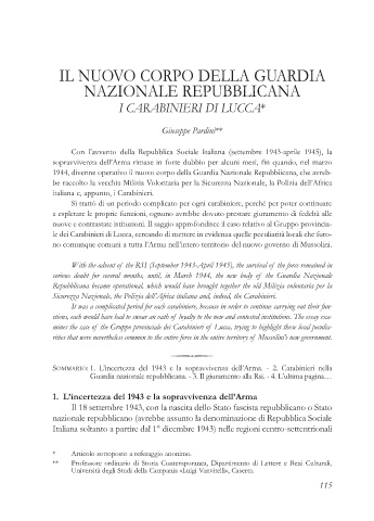 mines the case of the Gruppo provinciale dei Carabinieri of Lucca, trying to highlight those local peculia-