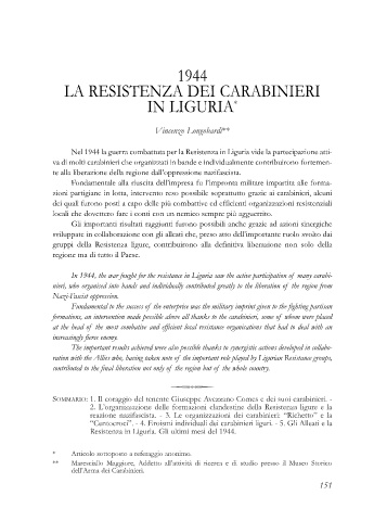 In 1944, the war fought for the resistance in Liguria saw the active participation of many carabi-