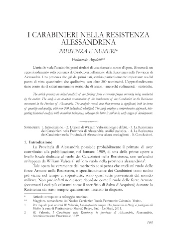 dei Carabinieri nella Provincia di Alessandria: analisi statistica. - 4. La Resistenza