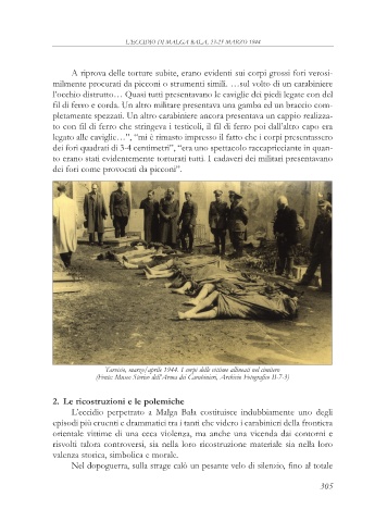 pletamente spezzati. Un altro carabiniere ancora presentava un cappio realizza-