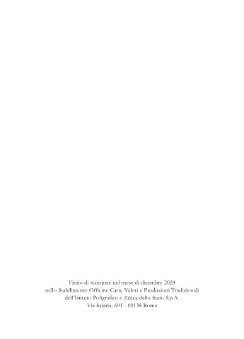 Finito di stampare nel mese di dicembre 2024 nello Stabilimento Officine Carte Valori e Produzioni Tradizionali dell’Istituto Poligrafico e Zecca dello Stato S.p.A. Via Salaria, 691 - 00138 Roma