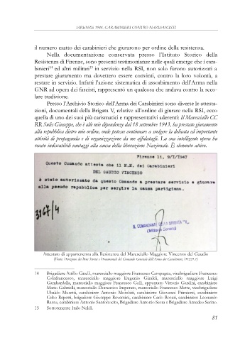 il numero esatto dei carabinieri che giurarono per ordine della resistenza.