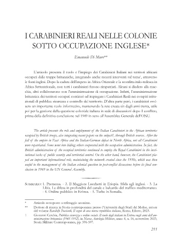 The article presents the role and employment of the Italian Carabinieri in the African territories