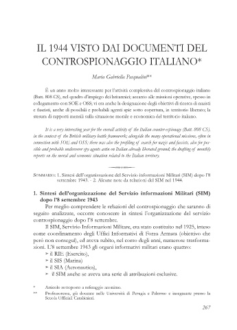 SOMMARIO: 1. Sintesi dell’organizzazione del Servizio informazioni Militari (SIM) dopo l’8