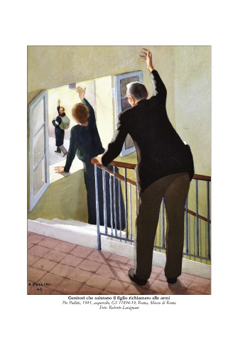 Genitori che salutano il figlio richiamato alle armi Pio Pullini, 1945, acquerello, GS 11894-19, Roma, Museo di Roma Foto: Roberto Lucignani