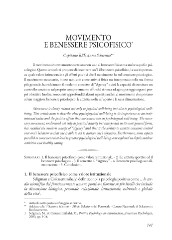 benessere psicologico. - 3. il concetto di “Agency”. - 4. benessere psicologico e ali-