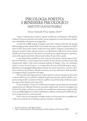 della psicologia positiva adottati dalle Forze Armate americane, quali il Comprehensive Soldier
