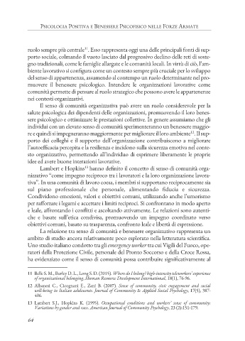 lambert e Hopkins hanno def nito il concetto di senso di comunità orga-