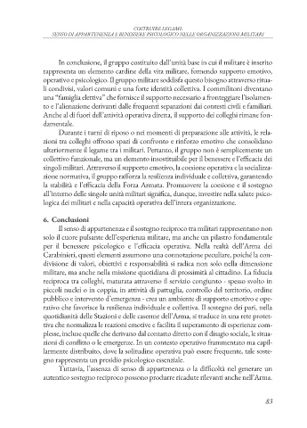 singoli militari. Attraverso il supporto emotivo, la coesione operativa e la socializza-