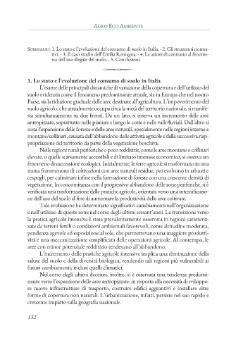 suolo agricolo, che attualmente occupa circa la metà del territorio nazionale, si manife-