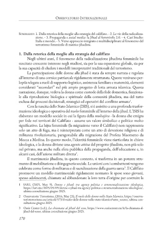 zione. - 3. Propaganda e social media: la Jihad al femminile 2.0. - 4. Casi Studio: