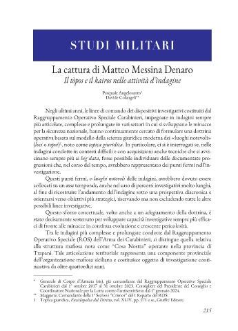 Operativo Speciale (ROS) dell’Arma dei Carabinieri, si distingue quella relativa