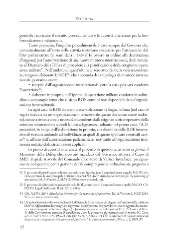 51 Il processo di pianif cazione di una operazione militare italiana è standardizzato a quello NATO, rin-
