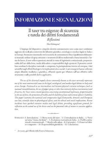 zionali e internazionali. - 7. Rischi sulla salute. - 8. Casi pratici. - 9. Il taser nel dirit-
