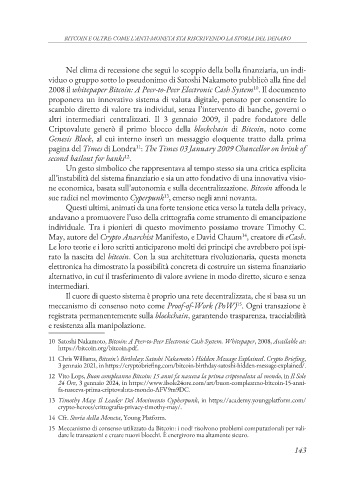 viduo o gruppo sotto lo pseudonimo di Satoshi Nakamoto pubblicò alla f ne del