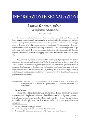 Il presente contributo effettua una disamina sui fenomeni della gentrification e del-
