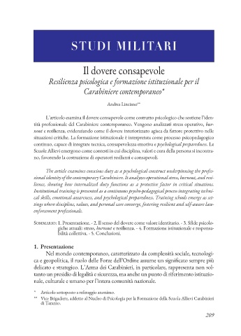 sional identity of the contemporary Carabiniere. It analyzes operational stress, burnout, and resi-